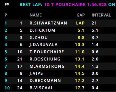 Voor Bent Viscaal en Richard Verschoor verliep de sessie minder voorspoedig, hoewel Viscaal wel wat ongelukkig was in zijn laatste ronde. Virtueel lag hij in deze ronde op P4, totdat hij opgehouden werd door Guilherme Samaia. Daardoor wist hij zijn tijd niet te verbeteren en was een vijftiende plek het hoogst haalbare.