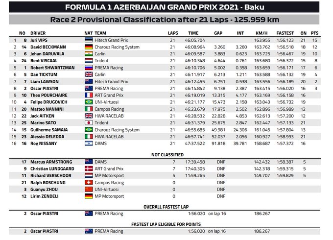 Verschoor eindigde uiteindelijk op P16. De twee Nederlandse heren starten dus buiten de top tien op Baku City Circuit, maar hebben ook het materiaal doorgaans niet om echt aanspraak te maken op een top tien-start. Viscaals Trident en Verschoors MP Motorsport zijn teams die doorgaans vrede hebben met een puntenfinish.