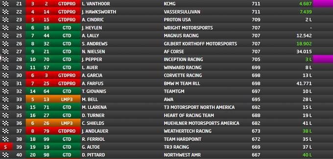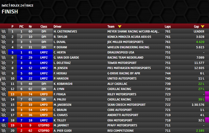 Nog eens drie Nederlandse deelnemers haalden de eindstreep wél, maar deden dit op ruime achterstand van de teams die de klassementszeges boekte. Renger van der Zande kon met DPi-team Cadillac Racing zelfs voor de eindzege gaan. Gedurende de avond en rond middernacht ging het zelfs zo goed dat zijn team geregeld aan de leiding lag. Vroeg in de ochtend werd zijn team getroffen door technische problemen. 'Ik hoor net dat er een alternator kapot is gegaan', gaf hij aan vanaf het circuit. 'Een wire, het is een klein stukje elektrisch draad.' De meer dan veertig ronden achterstand die het team opliep, waren logischerwijs niet meer dicht te rijden.