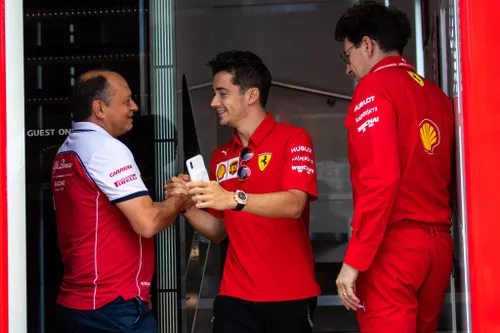 Ferrari loop Charles Leclerc oud-teambaas Frederic Vasseur tegen het lijf. De twee werkte samen bij het toenmalige Sauber en in de paddock werd er snel bijgekletst.