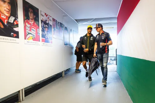 Ze mogen dan wel oud-teamgenoten zijn, maar de chemie tussen Max Verstappen en Daniel Ricciardo lijkt zeker nog niet vergaan. De twee deelden een paraplu en waren druk in gesprek op weg naar de persconferentie.