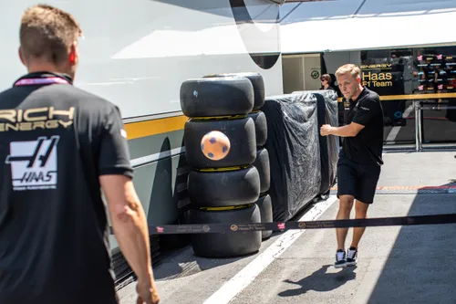 Het was niet alleen maar racen voor Kevin Magnussen in de Franse paddock. De Haas-coureur trapte vlak voor de kwalificatie nog een balletje met zijn fysiotherapeut. Alles voor de coördinatie, zullen we maar zeggen.