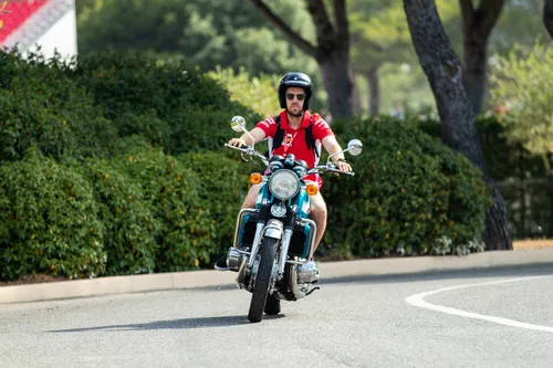 We blijven nog even hangen in de categorie 'motor', want ook Sebastian Vettel kwam op het Franse circuit aan op de motor. De Duitser ontvangt in stijl zijn fans bij de ingang van de paddock, die op hem stonden te wachten.