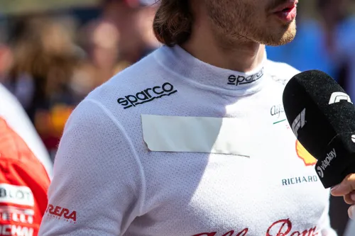 In Frankrijk is reclame voor alcohol verboden en ook de Formule 1-teams moeten daar rekening mee houden. Op het racepak van Antonio Giovinazzi is normaliter een drankmerk te zien, maar voor de race in Paul Ricard is die voor even afgeplakt.