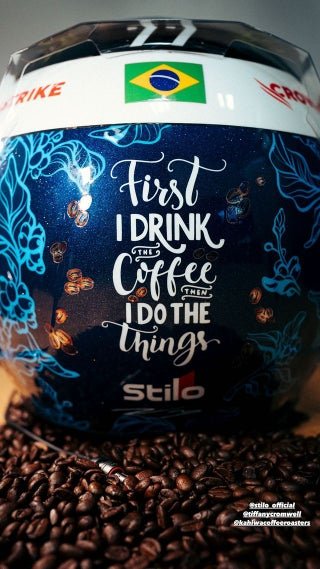 Mercedes-coureur, die recentelijk zelfs plaatsnam in de jury van een lokale Finse koffieroosterij, een groot fan is van de warme drank en dat is dan ook precies wat hij tentoonstelt met zijn nieuwe hoofddeksel.