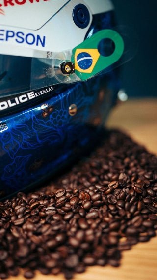 Bottas gaat in Brazilië voor een donkerblauwe helm, met lichtblauwe tinten erop. Daarnaast zie je op de bovenkant van de helm een jutenzak met een koffieboon erop. Op de achterkant van de helm is een tekst te vinden waarin hij zijn waardering uitspreekt voor het drankje. De Braziliaanse invloeden zijn te zien in de vorm van een klein logo aan de achterkant, evenals een logo op de tear-off.