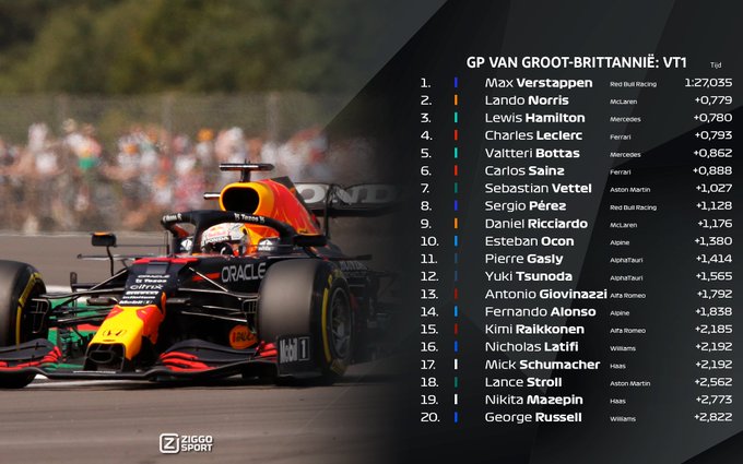 De snelle ronde van Norris tijdens VT1 reed hij op de gele mediumband, terwijl Verstappen en Hamilton hun tijd klokten op de rode banden, een compound zachter. Het gat tussen Verstappen en Norris van 0.779 seconde is in werkelijkheid dus nog iets kleiner, al is het tijdens de trainingen nog maar de vraag of de bolides volledig zijn opengeschroefd. Toch blijft een gat van 0.780 seconde tussen Verstappen en Hamilton vrij groot.