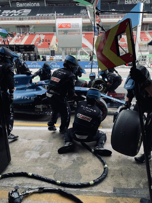 In ronde 21 was het uiteindelijk zo ver voor Alonso om zijn eerste pitstop te maken van de race. De thuisheld wisselde van de zachte banden naar de mediums. Veel langer had Alpine ook niet moeten wachten, want Alonso besloot zijn beklag te doen over de banden. Zelfs de vloer voelde niet helemaal goed voor hem, al is het onbekend waarom dat het geval was. Loos stelde zijn coureur al snel gerust dat alles gewoon goed leek vanaf de pitmuur. De pitstop moest perfect verlopen, gezien ook Vettel dezelfde ronde naar binnen ging voor vers rubber. Dat lukte, want de stop van de Duitser duurde vier seconden. Alonso's bandenwissel werd gedaan binnen twee en een halve seconde.