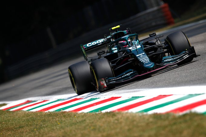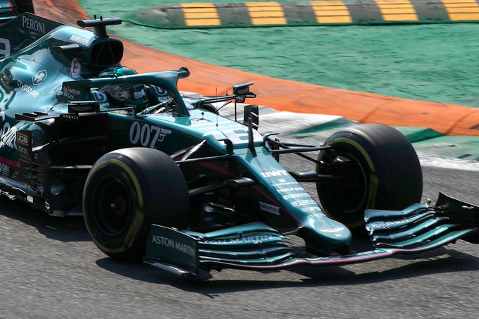 Door een gridstraf van Valtteri Bottas schoven Stroll en Vettel allebei een plekje omhoog vergeleken met hun sprintrace-resultaat. Bij de start boekte de Canadees in eerste instantie geen winst qua posities. Daarnaast moest Stroll in de tweede chicane de bocht afsnijden om Sergio Pérez niet vol van achteren te raken, terwijl Vettel al aan de binnenkant zat van zijn teamgenoot. Na de chicane spinde Antonio Giovinazzi en zat Vettel nu aan de buitenkant voor de Curve di Lesmo. Hier ging het fout tussen de Aston Martin-mannen. Stroll duwde zijn collega erg wijd en nog net niet volledig van de baan. Hierdoor verloor Vettel drie plekken en lag de Duitser op P12. Stroll lag nu achtste, mede door de spin van Giovinazzi.