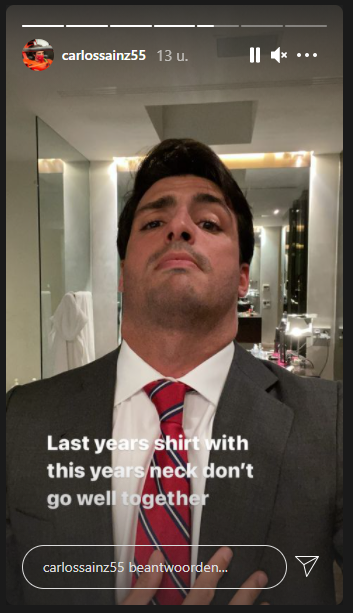 Carlos Sainz heeft dit jaar veel getraind en dat merkt hij tijdens kerst. De Spanjaard heeft zijn nekspieren dusdanig getraind dat het overhemd van Kerstmis in 2019 hem inmiddels niet meer past. Ook vinden we kiekjes van citroentaart en zijn honden met kerststrikjes terug op zijn Instagram.