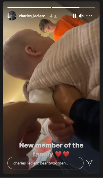 Charles Leclerc er ook een nieuwe familiegenoot bij. Op zijn Instagram plaatst hij een foto met een baby die zijn vinger vasthoudt bij de festiviteiten rondom de feestdagen. Van wie de pasgeboren Leclerc precies is, is niet duidelijk.
