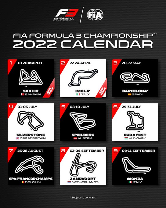 Kort na de Formule 1, hebben ook Formule 2 en Formule 3 hun kalenders voor 2022 onthuld. De twee juniorklasses doen allebei een aantal nieuwe circuits aan, waar ze nog nooit eerder geweest zijn. De F2-kalender bevat een recordaantal races: 28 stuks, verspreid over 14 weekenden. De klasse rijdt voor het eerst op Zandvoort en Imola. De F3-kalender bestaat uit 9 weekenden van elk 2 races, met voor het eerst Bahrein en Imola op de planning.