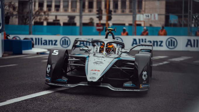 Mercedes in de Formule E. De trainingen in de ochtend eindigden beiden vreemd. Met een bizarre kettingbotsing in de eerste vrije training, en een rode vlag in de tweede vrije training door een losgekomen kerbstone. Genoeg reuring dus.