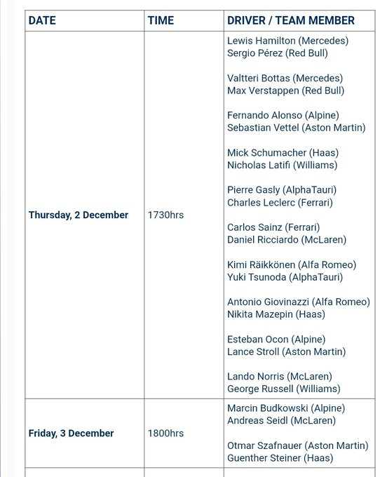 Voor het aankomende raceweekend in Saoedi-Arabië is het schema voor de persconferentie bekendgemaakt. De donderdag staat in het teken van pers- en mediaverplichtingen. Deze keer mogen de topteams, Mercedes en Red Bull, paarsgewijs opdraven voor de persconferentie. Max Verstappen zal met Valtteri Bottas aanschuiven, terwijl Sergio Perez samen met Lewis Hamilton aanschuift. De titelkandidaten zullen elkaar op de baan pas tegenkomen, maar er zullen ongetwijfeld vragen worden gesteld over het constructeurskampioenschap, gezien de indeling.
