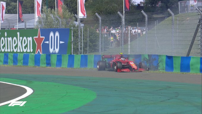 Carlos Sainz heeft zichzelf van een potentieel goede startpositie beroofd door in het tweede gedeelte van de kwalificatie voor de Grand Prix van Hongarije de muur in te vliegen. De Ferrari-coureur verloor ingaande de laatste bocht van de Hungaroring de controle over zijn SF21 en eindigde in de bandenstapels. De rode vlag werd uitgehangen en daarmee werd de sessie stilgelegd. Er staan nog 6:40 minuten op de klok in Q2.