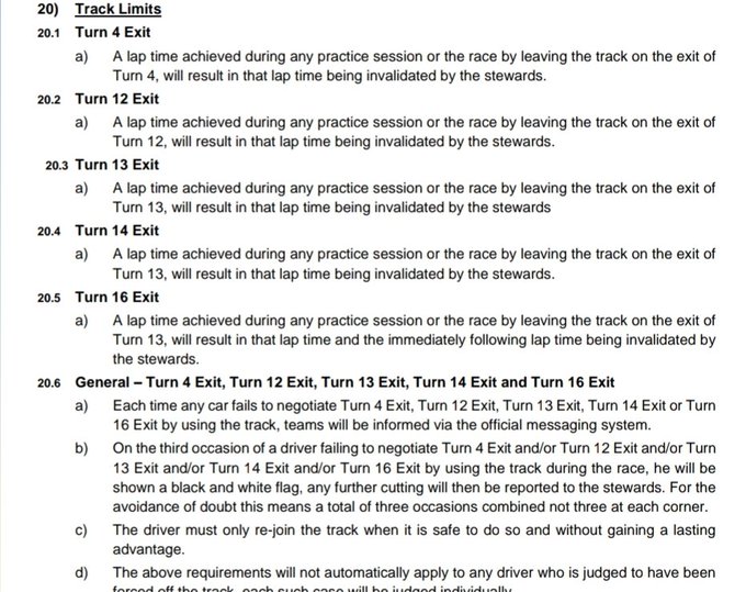 Voor de Grand Prix in Qatar moeten de coureurs rekening houden met vijf verschillende bochten waar een track limit ligt. Dit was door veel kenners al voorspeld, aangezien het circuit zeer breed is. Dit komt omdat de baan origineel is ingericht voor de MotoGP. Coureurs moeten in bocht 4, 12, 13, 14 en 16 rekening houden met track limits.