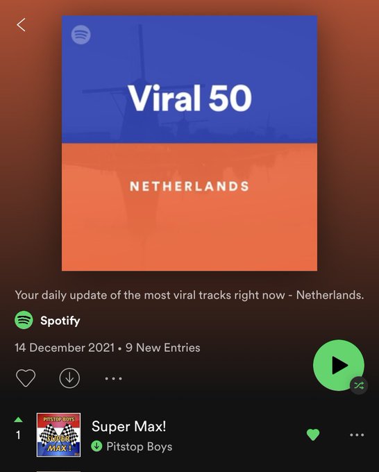Het wereldkampioenschap van Max Verstappen wordt wereldwijd op een hele speciale manier gevierd. Het nummer 'Super Max' staat op de vijfde plek in de Spotify-lijst met de top-vijftig meest gedeelde nummers ter wereld. Deze lijst wordt dagelijks bijgewerkt en het nummer is dus op een prestigieuze vijfde plek beland. Daarnaast staat het nummer in verschillende landen ook in de top-vijf, waaronder in Groot-Brittannië en Italië. Het nummer kwam in 2016 uit op YouTube en is gedurende de titelstrijd van 2021 steeds populairder geworden onder Formule 1-fans.
