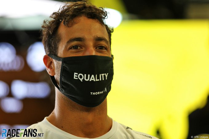Evenals Lewis Hamilton heeft Daniel Ricciardo nu ook besloten om zich via de Formule 1 te uiten over maatschappelijke problemen. Zo draagt hij op Sochi dit weekend een mondkapje dat 'equality' zegt. Dit vertaalt in het Nederlands naar gelijkheid.