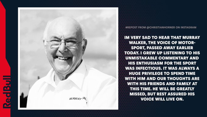 We are immensely sad to hear that Murray Walker has passed away His passion and love of the sport inspired millions of fans around the world He will forever be a part of our history, and will be dearly missed