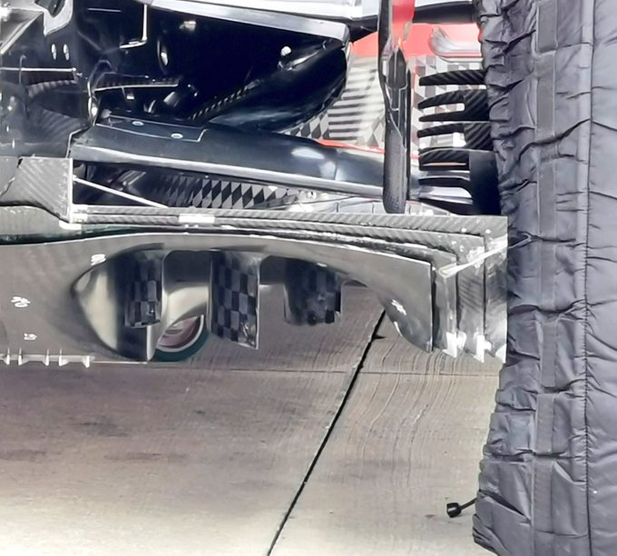 de Italiaanse tak van Motorsport.com op. Het ontwerpteam van Adrian Newey heeft wat flapjes aan de onderkant van de auto geplaatst om de 'aerodynamische lading' beter te regelen. Die flapjes zaten al aan de RB16B, maar de structuur is wat veranderd. Ze zijn niet alleen maar gebogen, maar hebben ook allemaal een aparte, complexere vorm gekregen. Zo moet de luchtstroming beter geleid worden, wat dus op aerodynamisch gebied tijd moet opleveren. De begeleidende foto is te vinden in het artikel van