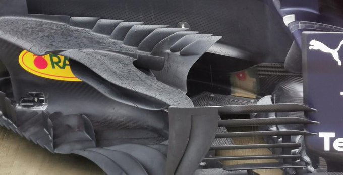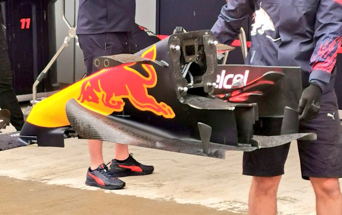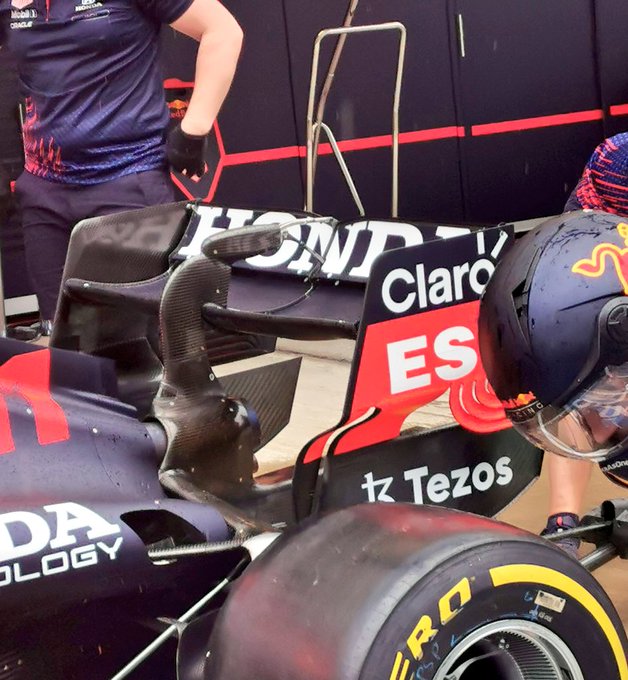 Motorsport.com. Op foto's is te zien dat de achtervleugel van de Oostenrijkse renstal steil naar boven afloopt, wat ervoor moet zorgen dat de neerwaartse druk wordt vergroot. Het zal Red Bull een voordeel geven in de laatste sector en het bochtige middenstuk, waar veel hogesnelheids- en korte bochten te vinden zijn.