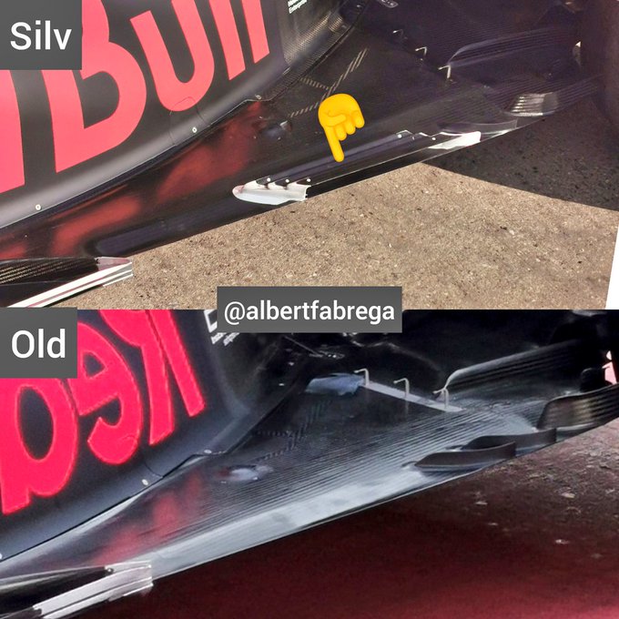 Silverstone in een poging de upgrades van Mercedes tegen te gaan. Op onderstaande foto's is te zien dat de Oostenrijkse renstal in een zoektocht naar een betere balans en meer neerwaartse druk enkele gleuven gemaakt heeft aan de zijkant van het chassis.