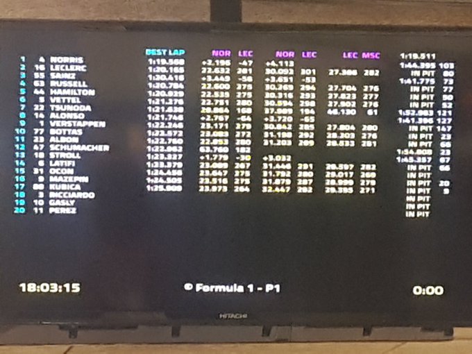 Carlos Sainz, die niet aan de 80 ronden van de Monegask kwam, maar wel de op twee na snelste tijd neerzette. Leclerc eindigde de middag op de tweede tijd, en klokte een 1:20.165. Ferrari lijkt haar zaakjes prima op orde te hebben.