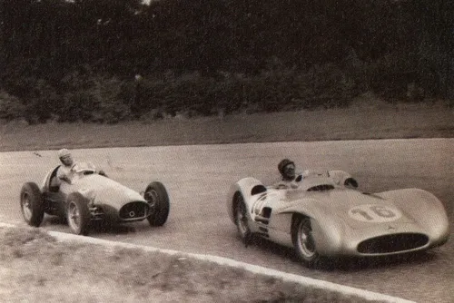 Fangio viel uit, maar Collins weigerde kampioen te worden dankzij andermans pech. Hij overhandigde zijn bolide aan Fangio voor de laatste ronden van de slotrace op Monza, iets wat toen nog mocht, en zag dus ook zijn rivaal en teamgenoot kampioen worden.