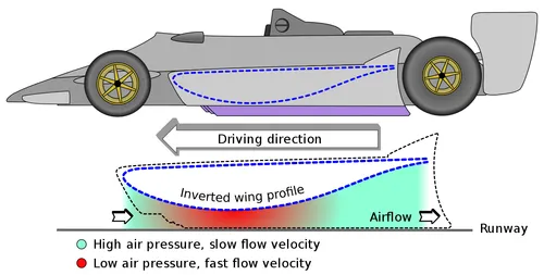 In de jaren zestig begonnen de teams te experimenteren met het plaatsen van vleugels op hun auto's. Het doel was om hogere bochtensnelheden te kunnen creëren door het verkrijgen van downforce. Zoals bekend zorgen vleugels ervoor dat de luchtstroom de auto's naar de grond drukken, waardoor downforce ook wel neerwaartse druk wordt genoemd. Rond het einde van de jaren zeventig begonnen er echter nog meer experimenten om de auto's zo snel mogelijk te maken.