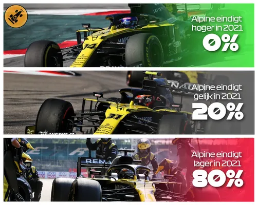 Er staat Alpine een spannend jaar te wachten. Veel wijzigingen binnen de structuur van het team moeten de Franse deelnemer verder helpen, maar het zou ook zomaar het averechtse effect kunnen hebben. De werknemers moeten immers wennen aan de samenwerking met de nieuwe heren en het is dan ook nog maar de vraag of de sprong naar de top drie gemaakt kan worden. Ook wordt er dit jaar al aan de 2022-bolide gewerkt, waardoor het voor te stellen is dat sommige teams de teugels wat laten vieren in 2021. Alle teams zouden deze strategie kunnen hanteren, zo ook Alpine.