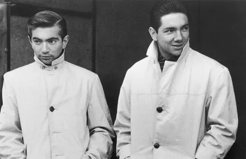 Ricardo (links) en Pedro (rechts) Rodriguez in de pitstraat van de Nürburgring voor de 1000 km-race.
