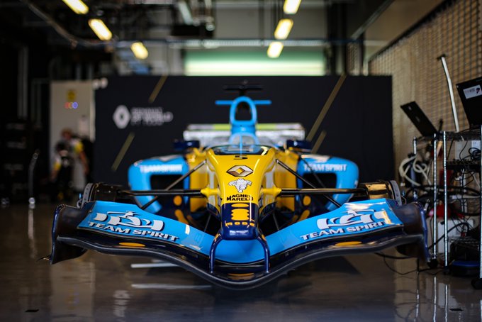 De R25 waarmee Fernando Alonso komend weekend een drietal feestelijke runs zal maken, staat klaar in de garage van Renault. De blauw-gele Formule 1-auto keert eenmalig terug op het circuit, aangezien Renault voor de laatste keer onder de naam 'Renault' zal rijden. Volgend jaar wordt het team namelijk omgedoopt tot Alpine F1 Team.