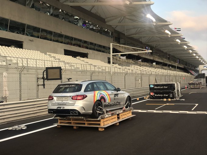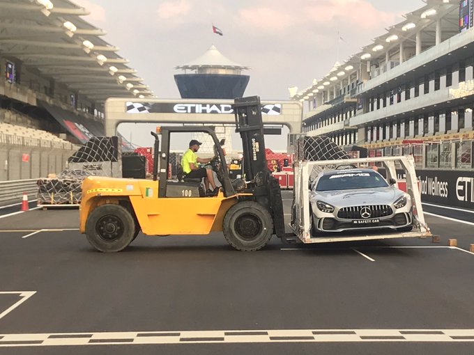 Jack Plooij is aangekomen op het circuit in Abu Dhabi, zo laat hij zien via Twitter. Plooij deelt een aantal foto's waarop te zien is dat de safety car en de medical car worden uitgeladen. 'Even op de blokken parkeren', grapt de Nederlander. Vrijdag begint alweer het laatste Formule 1-weekend van het seizoen.