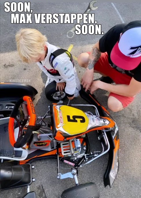 Kimi Räikkönen grapt via zijn Instagram-story dat hij zijn zoontje klaarstoomt voor de concurrentie tegen Max Verstappen. De Iceman is vaak te vinden op de kartbaan met zijn kinderen en de verwachtingen zijn hoog: 'Soon Verstappen, soon.'