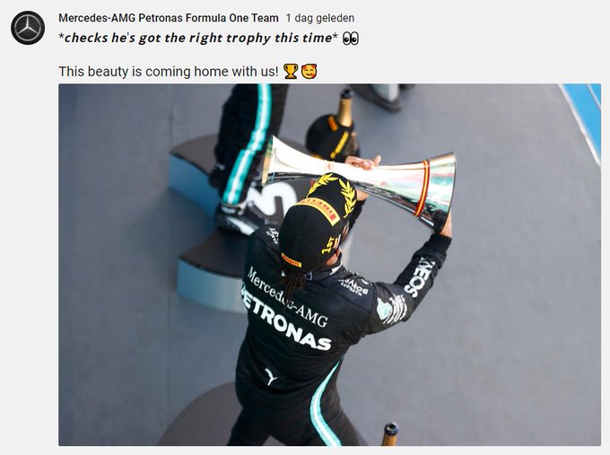 Lewis Hamilton wist tijdens de Grand Prix van Spanje weer eens te winnen, maar dat was tijdens de tweede race op Silverstone niet het geval. Per ongeluk nam Hamilton toen de beker van Verstappen mee. Dit keer zit hij wel goed volgens Mercedes.