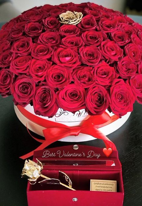 Eerder zagen we nog een foto van Max Verstappen en Kelly Piquet op het circuit van Barcelona als 'valentijnsfoto'. Hoewel een ritje op dat circuit zeker leuk is, is het niet bepaald romantisch. Dat is dit cadeau van (of voor) Kelly Piquet in ieder geval wel. Naast wat lijkt op een groot boeket of taart, bevat het een massief gouden roos.