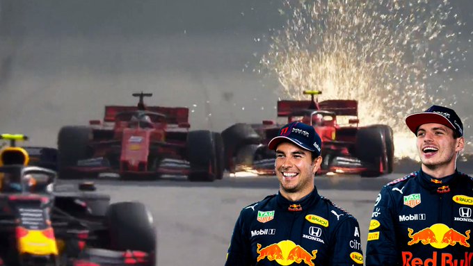 Red Bull heeft memes (humoristische plaatjes) van Max Verstappen en Sergio Perez gedeeld die fans hebben gemaakt. De twee coureurs zijn lachend te zien op de voorgrond van momenten die de concurrentie liever zou willen vergeten.