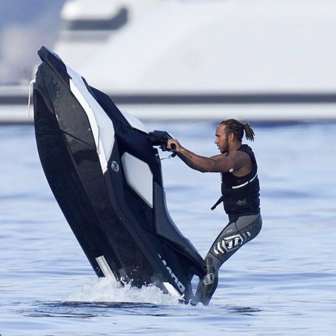 Hamilton springt uit een vliegtuig en laat kunsten zien
