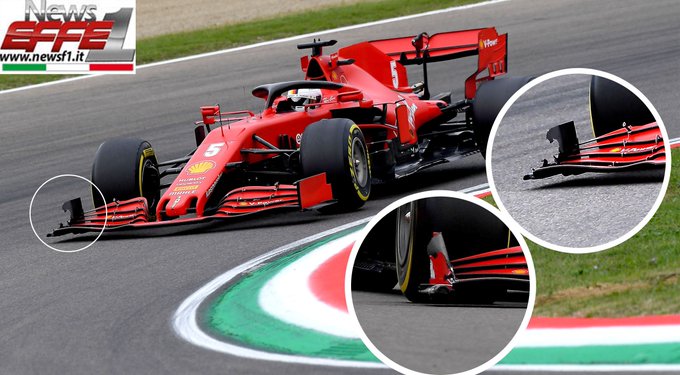 Valtteri Bottas wist in ronde twee van de Grand Prix van Emilia Romagna een stuk puin niet te ontwijken, waardoor hij beschadiging opliep aan de vloer van zijn Mercedes. Na de race kwam het team erachter dat het een onderdeel was van Ferrari, maar nu is ook duidelijk waar het thuishoort: op de voorvleugel van de auto van Sebastian Vettel.