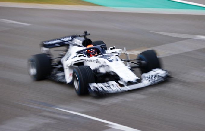 Kvyat rijdt een rondje over het circuit in 2020-auto