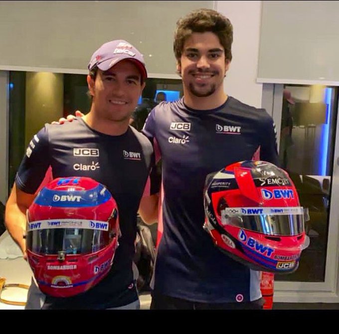Racing Point heet. Ondanks dat wisselen de twee coureurs wel van helm, wat een teken van respect is in de autosport.