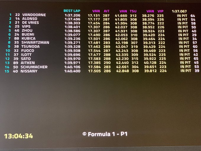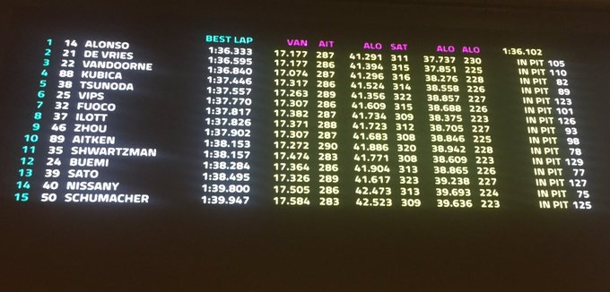Stoffel Vandoorne volgen met een 1:36:595 en een 1:36:840 in de