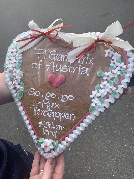 Red Bull Ring in 2021 mag het duidelijk zijn: Max Verstappen is een gewenste gast. De lokale organisatie bevestigde dit nog maar eens met een mooi cadeautje voor de Nederlander. Ter aanmoediging boden ze hem een enorme, hartvormige koek.