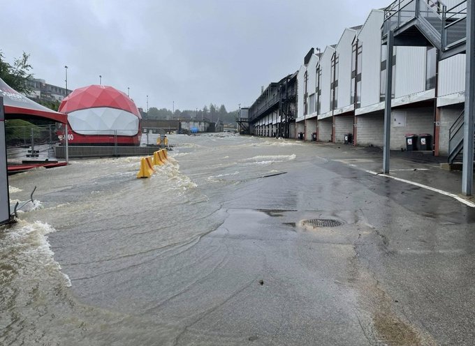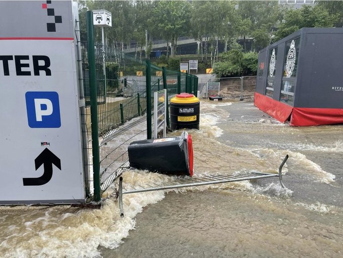 De overstromingen in het zuiden van Nederland zijn ook over de grens te voelen. Doordat de Maas buiten haar oevers treedt, is ook het gebied rond Circuit Spa-Francorchamps overstroomd. Het gevolg: schade aan de infrastructuur rondom het fameuze Formule 1-circuit. Ook is er een race afgelast op de Nürburgring wegens wateroverlast in Duitsland. De organisatie van de Grand Prix van België zal vast niet tevreden zijn met wat er momenteel gaande is in onder meer Nederland, België en Duitsland. De Maas, een 950 kilometer lange rivier die vanaf de Alpen, via België en Nederland haar weg vindt naar de zee, zorgt voor veel overlast op Spa-Francorchamps. Zo staat er een laag water op het circuit, evenals rondom de paddock-gebouwen.