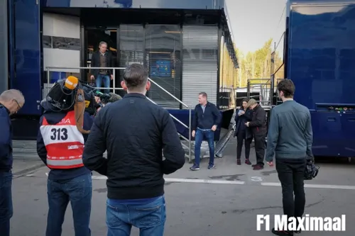 Jos Verstappen is maandag aanwezig en begeeft zich vanaf het motorhome naar de garage van zoon Max. ‘Waar staan we?’, vraagt Jos zich hardop af. Rond 09:00 uur verzamelt zich een heuse menigte rondom het motorhome van Red Bull. Als gevraagd wordt hoe laat Max naar buiten komt, antwoordt manager