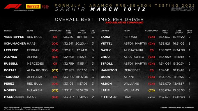 Charles Leclerc die op de laatste dag de snelste tijd van het team neerzette. Echter was het Mick Schumacher die het snelst was met een Ferrari-motor. De Italianen zijn met drie teams dichtbij de 1000 ronden gekomen en hebben dus ook op motorisch gebied een hoop data kunnen verzamelen om deze nog beter af te kunnen stellen en aan te passen op de nieuwe E10-brandstof.