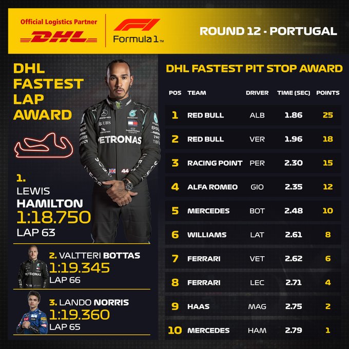 Naast dat het team de snelste pitstop in handen nam, was de op één na snelste ook voor Red Bull. Max Verstappen kon na 1,96 seconden zijn weg weer vervolgen en krijgt daarmee achttien punten toegewezen voor de