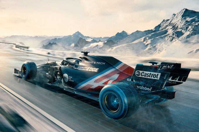 Daarnaast heeft Alpine ook een klein voorproefje gegeven van wat ons in 2021 te wachten staat. Hoewel de kleurensamenstelling die hieronder afgebeeld is slechts een 'winter livery' is, lijkt men bijvoorbeeld wel al de positie van de sponsoren te verklappen, evenals het prominente Alpine-logo op de achtervleugel.