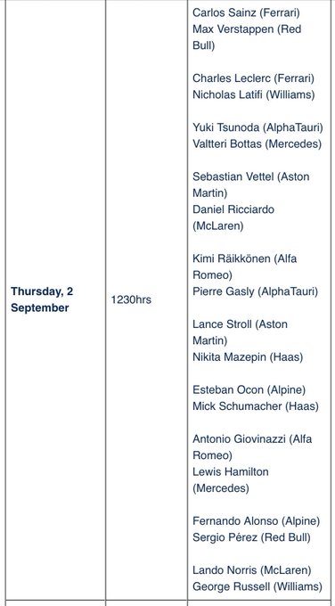 Lando Norris. Russell zal in het middelpunt van de belangstelling staan, na zijn sublieme P2 op Spa-Francorchamps. Bovendien wordt de geruchtenmolen over zijn overstap naar Mercedes alsmaar sterker. Lando Norris zal, net als in Hongarije naast Verstappen, misschien wat ondersneeuwen onder het nieuws. Gelukkig kennen Norris en Russell elkaar nog goed van hun Twitch streams samen, toen de coronacrisis net begonnen was.