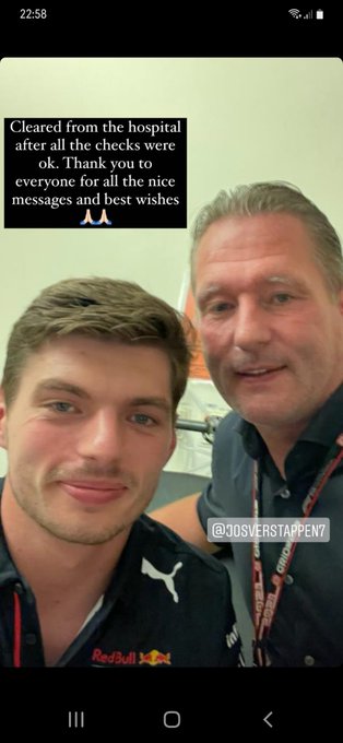 Verstappen bedankt zijn fans voor alle steunbetuigingen die hij heeft gekregen toen hij voor een CT-scan naar het ziekenhuis moest. 'Bedankt iedereen voor alle fijne berichtjes', schrijft hij eveneens op zijn Instagram. Vader